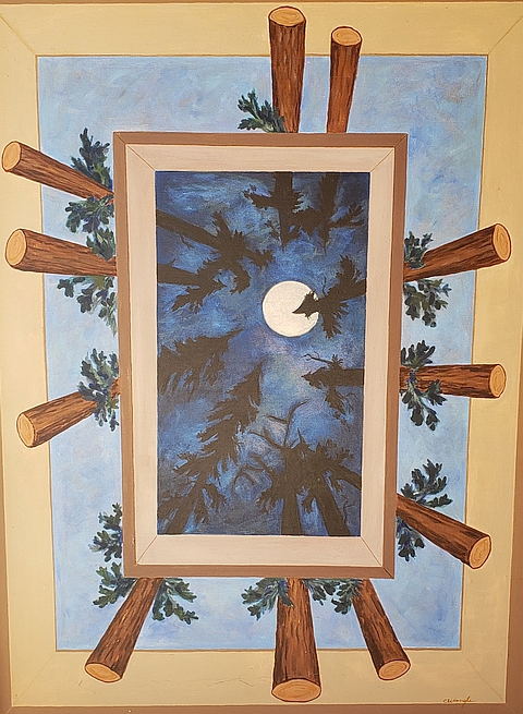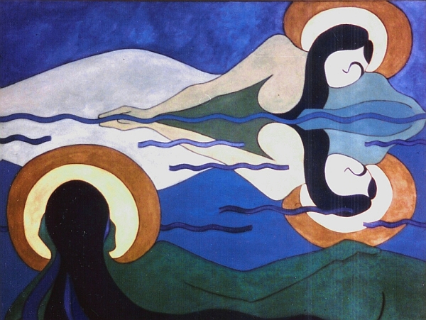 white buffalo calf woman - icon series on wood panel 14 x 36